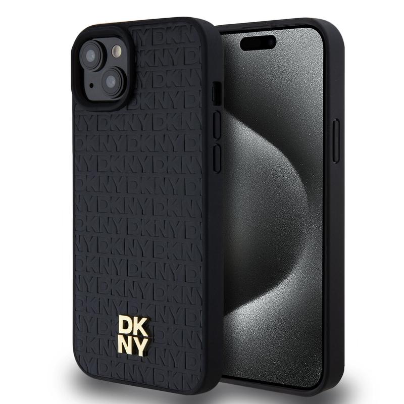 DKNY Repeat Pattern Stack Logo Hybrid Case for iPhone 15 Plus - MagSafe Compatible