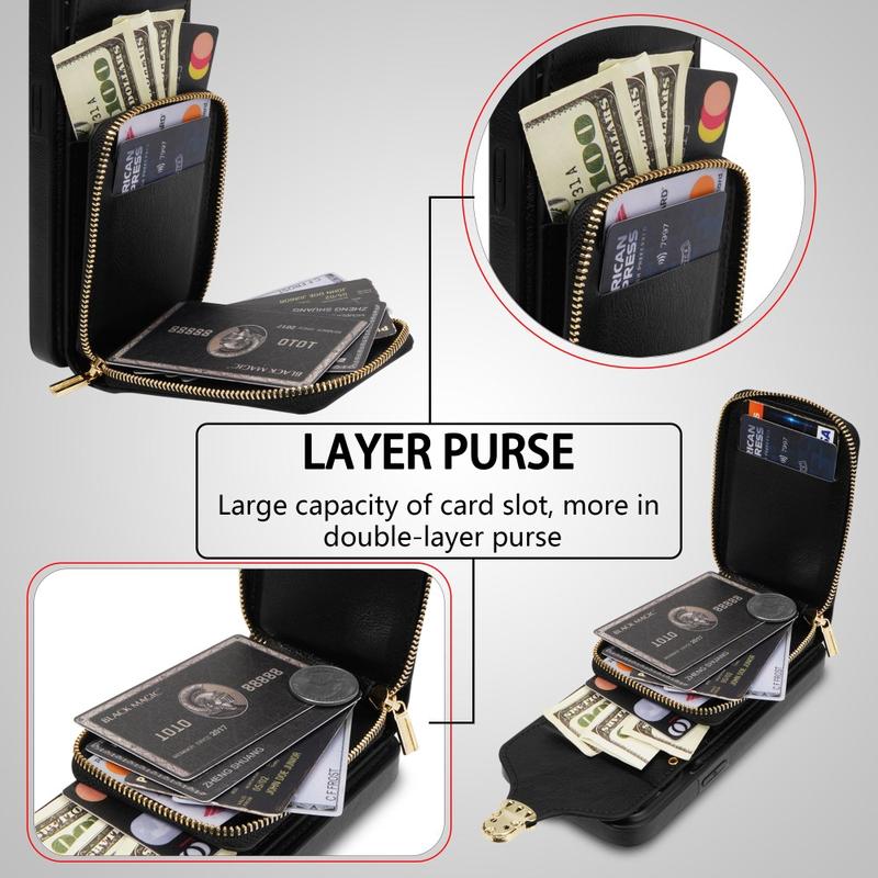 Carry your phone, cards, and cash in one sleek accessory with this wallet zipper case for iPhone 15 Plus. Made with durable TPU coated in premium polyurethane leather, it offers everyday protection while replacing the need for a separate wallet. Perfect for those who want style, convenience, and security in one.