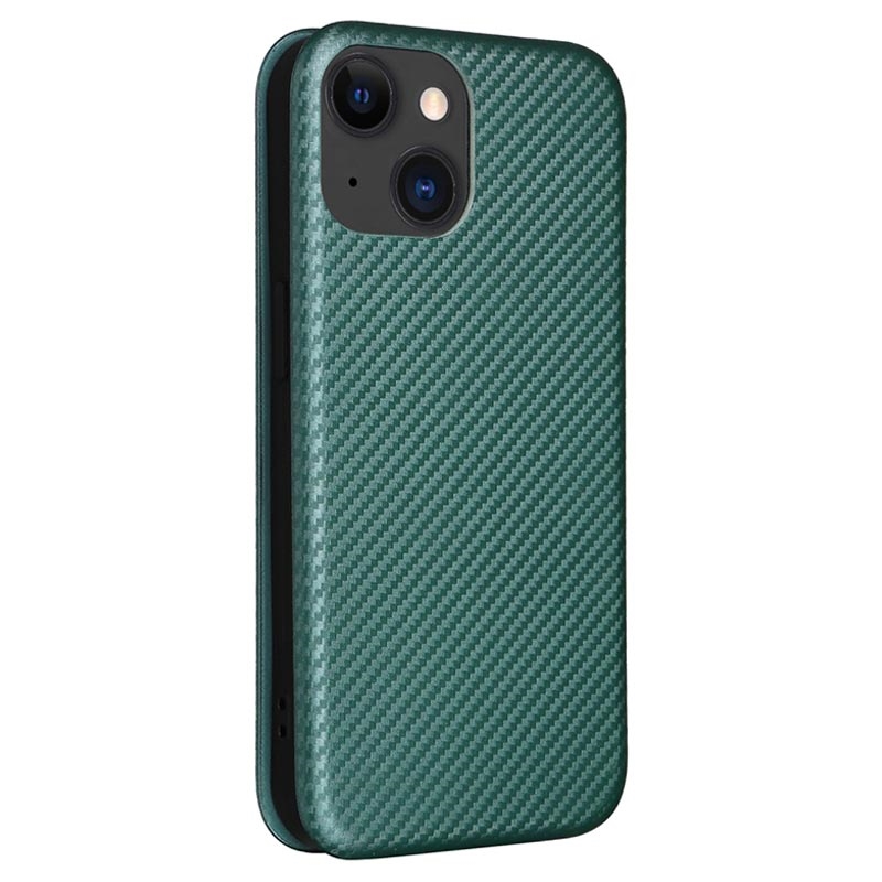 - Carbon fiber textured flip case for iPhone 15 Plus