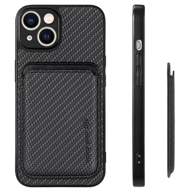 Magnetic Case with Card Holder for iPhone 15 Plus - Carbon Fiber