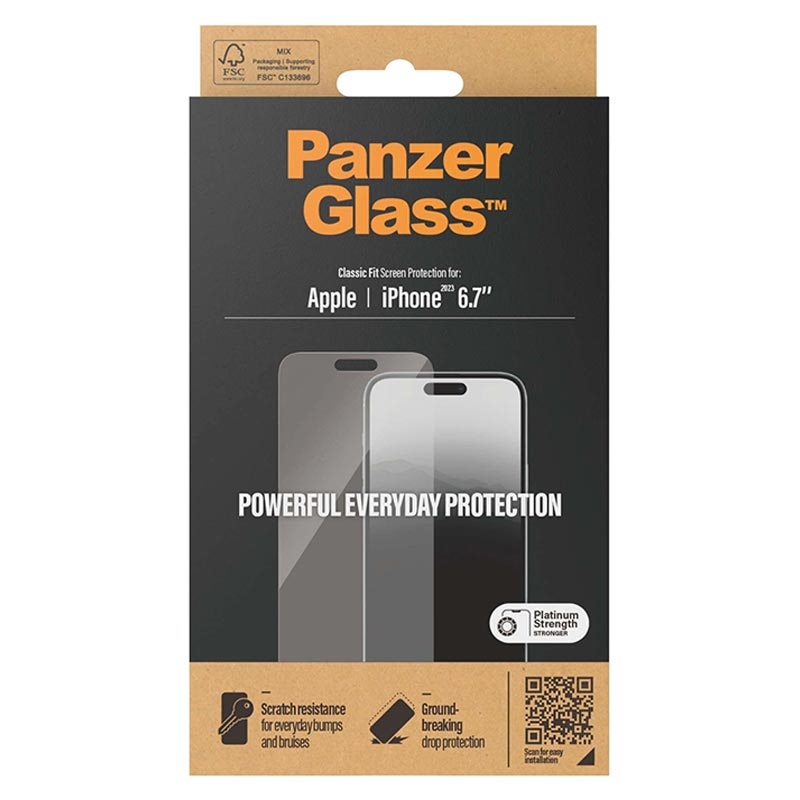 The platinum-strength PanzerGlass Classic Fit screen protector keeps the display of your iPhone 15 Plus in perfect condition, shielded from scratches and cracks. This highly transparent tempered glass screen protector perfectly preserves touch screen sensitivity and image quality. Thanks to the oleophobic and antibacterial coating, your iPhone 15 Plus screen will be free from smudges, fingerprints, and bacteria.