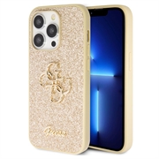 iPhone 15 Pro Max Guess Fixed Glitter 4G Metal Logo Case - Gold