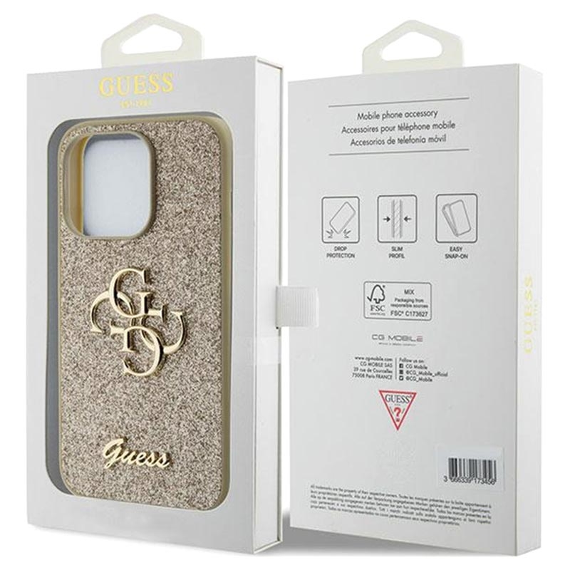- Spectacular Guess Fixed Glitter 4G Metal Logo cover for iPhone 15 Pro
