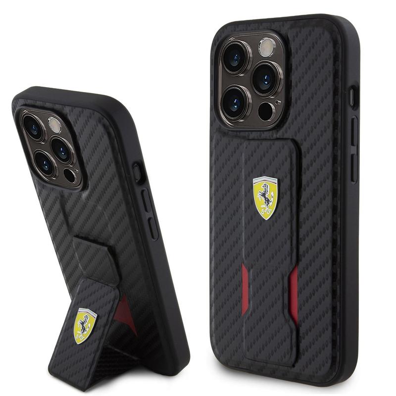 Ferrari Carbon Grip Stand Case for iPhone 15 Pro Max