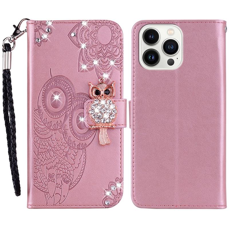 Owl Rhinestone Wallet Case for iPhone 15 Pro Max
