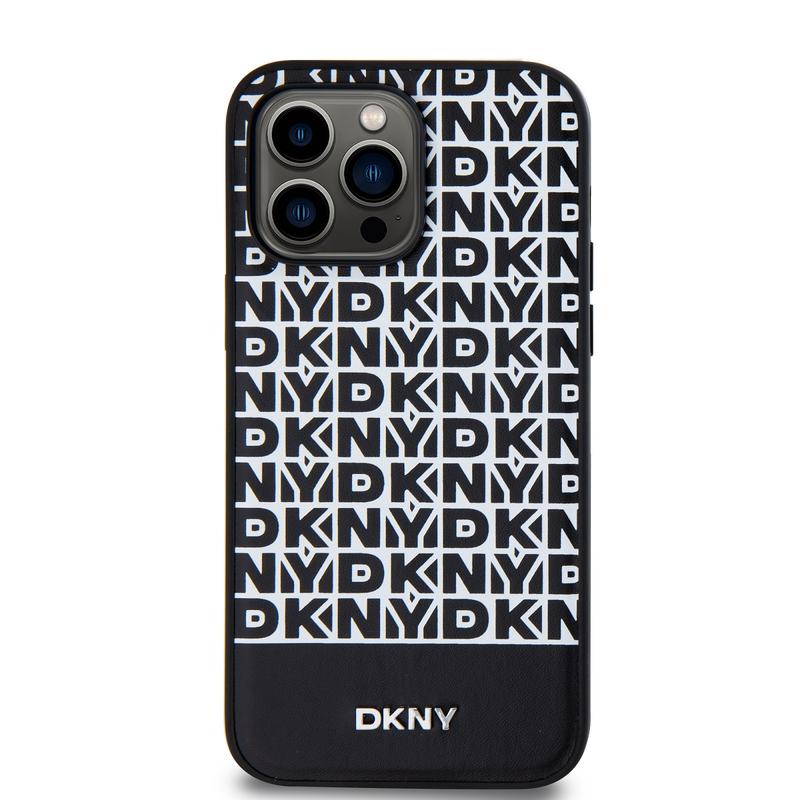 iPhone 15 Pro Max DKNY Repeat Pattern Bottom Stripe Case - MagSafe Compatible - Black