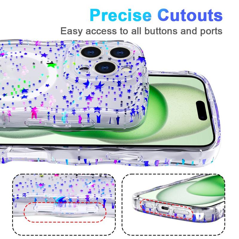 Wave-Edge Laser Glitter MagSafe TPU Case for iPhone 15 Pro Max