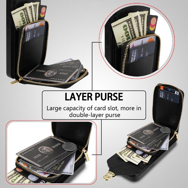 Carry your phone, cards, and cash in one sleek accessory with this wallet zipper case for iPhone 15 Pro. Made with durable TPU coated in premium polyurethane leather, it offers everyday protection while replacing the need for a separate wallet. Perfect for those who want style, convenience, and security in one.