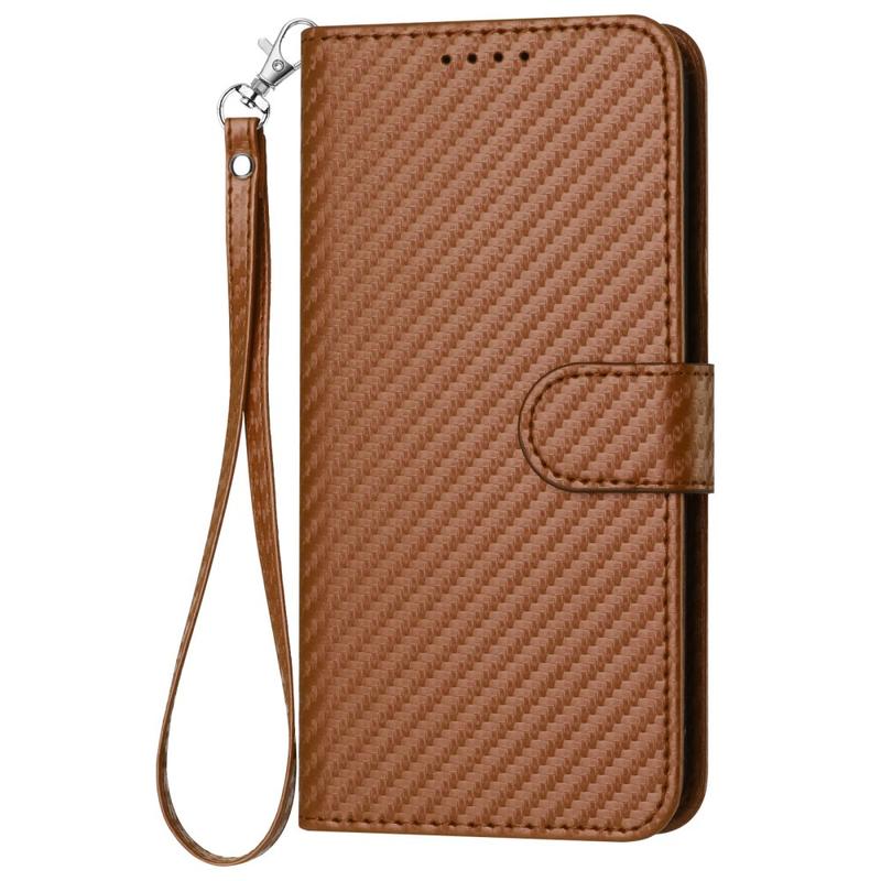 iPhone 15 Pro Max Premium Wallet Case with Strap - Carbon Fiber Texture - Carbon Coffee