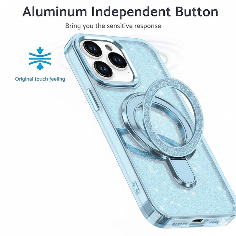 Bring style and protection together with the iPhone 15 Pro Max glitter case, combining elegant sparkle with reliable everyday durability. Made from high-quality materials and equipped with a built-in metal ring kickstand, this case keeps your phone secure, functional, and fashionable all day long.