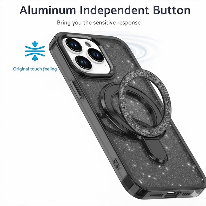 Glitter Case with Kickstand for iPhone 15 Pro Max - MagSafe Compatible TPU + PC Hybrid Kickstand Cover