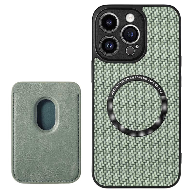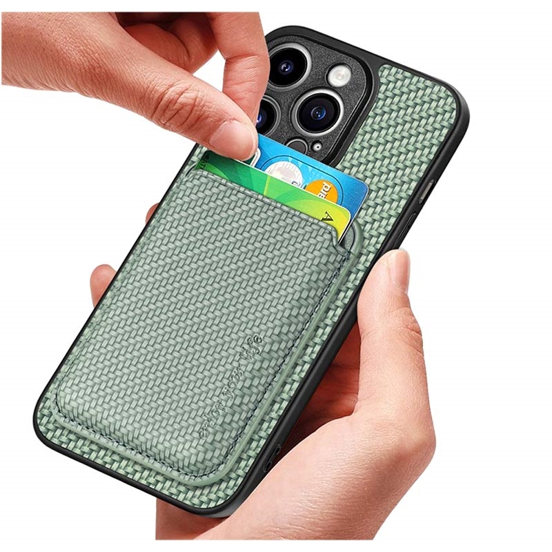 Magnetic Case with Card Holder for iPhone 15 Pro - Carbon Fiber