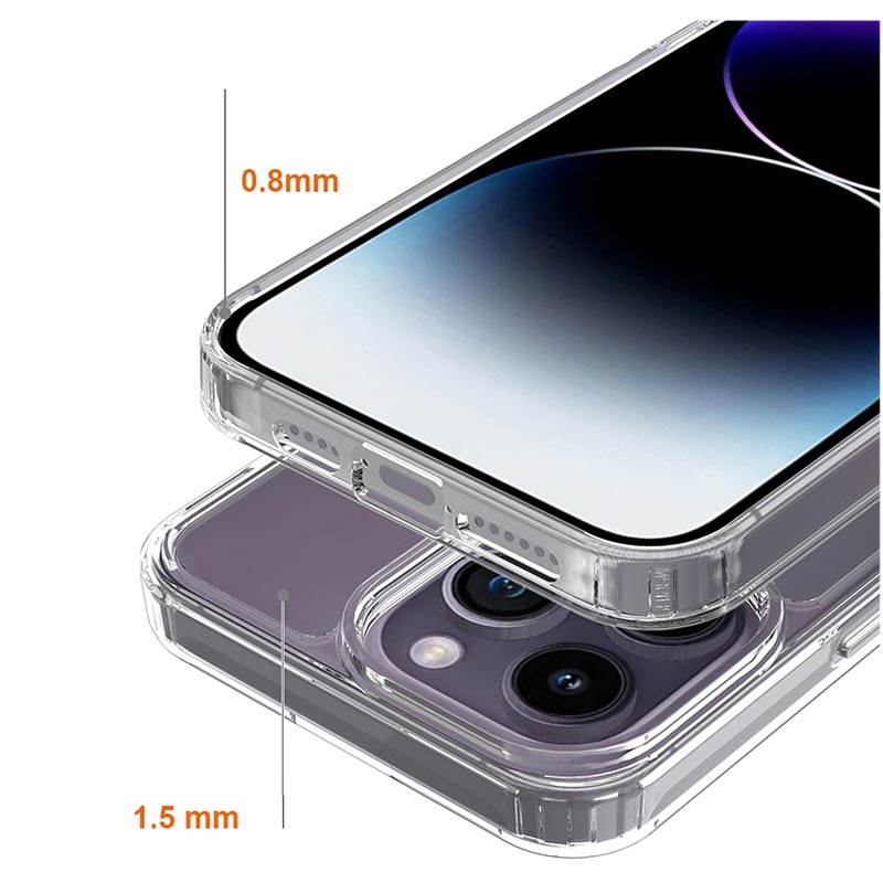 This quality Anti-Shock hybrid case for iPhone 15 Pro Max safeguards the back and the sides from daily bumps, dents, and scratches. The case is perfectly shaped to follow contours of your iPhone 15 Pro Max, while the transparent back lets its original beauty shine through.