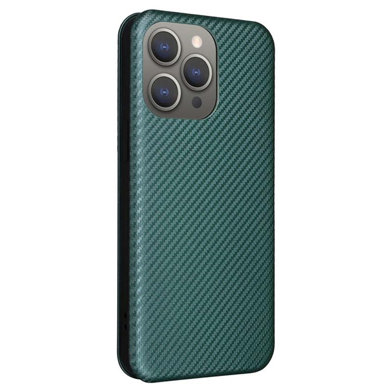 iPhone 15 Pro Max Flip Case - Carbon Fiber - Green