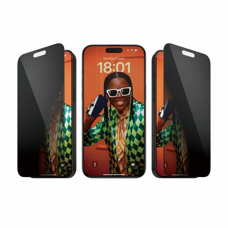 - Ultra-Wide Fit Privacy tempered glass for iPhone 15 Pro Max