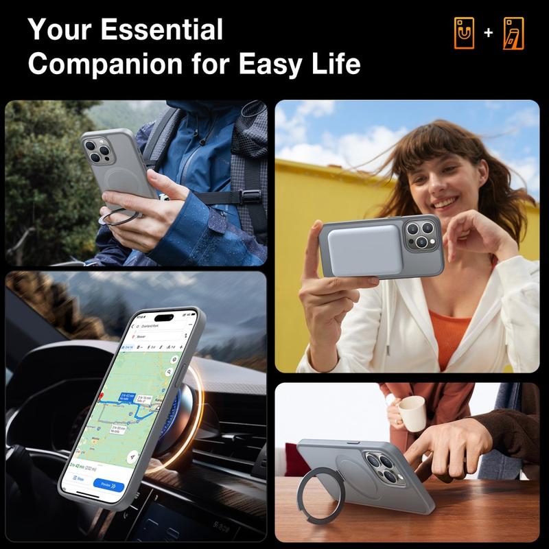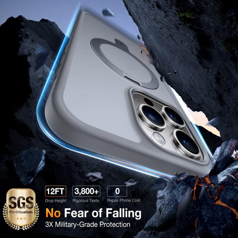 Slide this sleek cover on your iPhone 15 Pro Max and gain three essentials in one: rock-solid MagSafe alignment, a fold-flat metal stand for hands-free viewing, and SGS-certified military-grade drop protection—all without sacrificing pocket-friendly slimness.