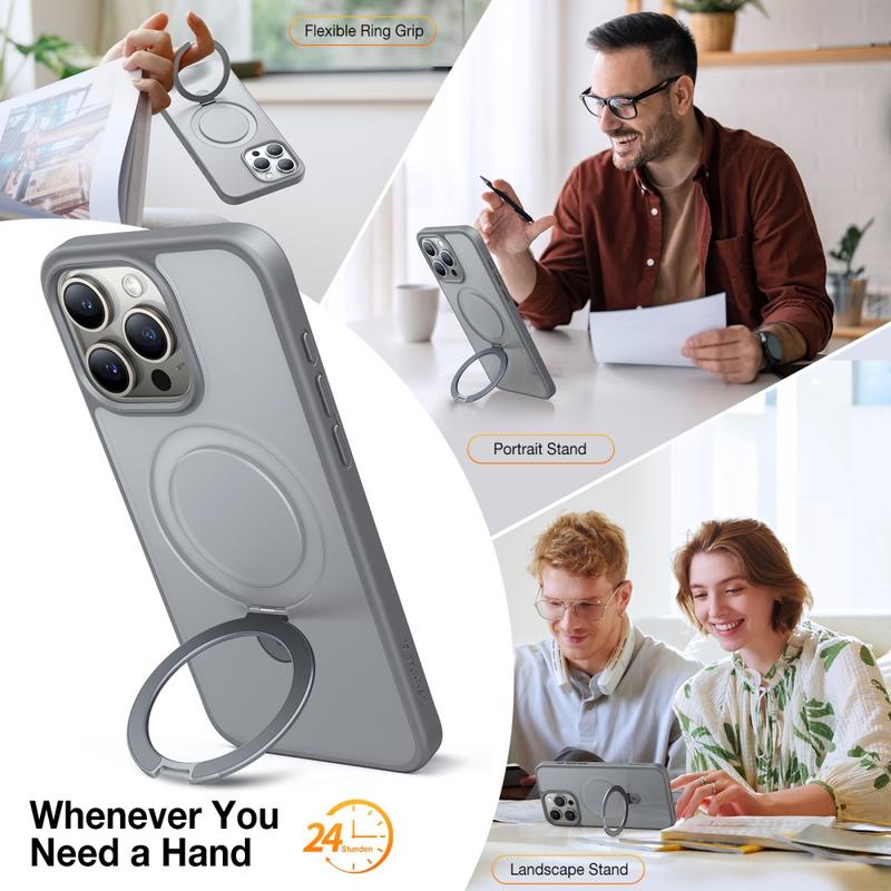 Torras Upro Ostand Matte Case for iPhone 15 Pro Max - MagSafe Grip, Built-In Kick-Stand, Drop-Safe Armor