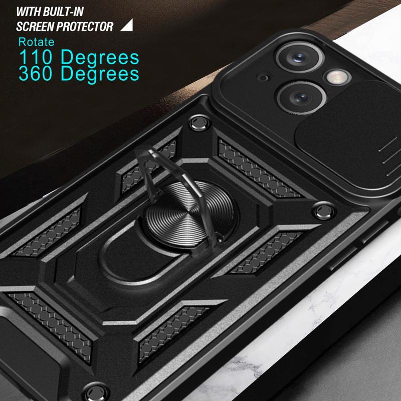 Rotary Ring Hybrid Case with Camera Shield for iPhone 15