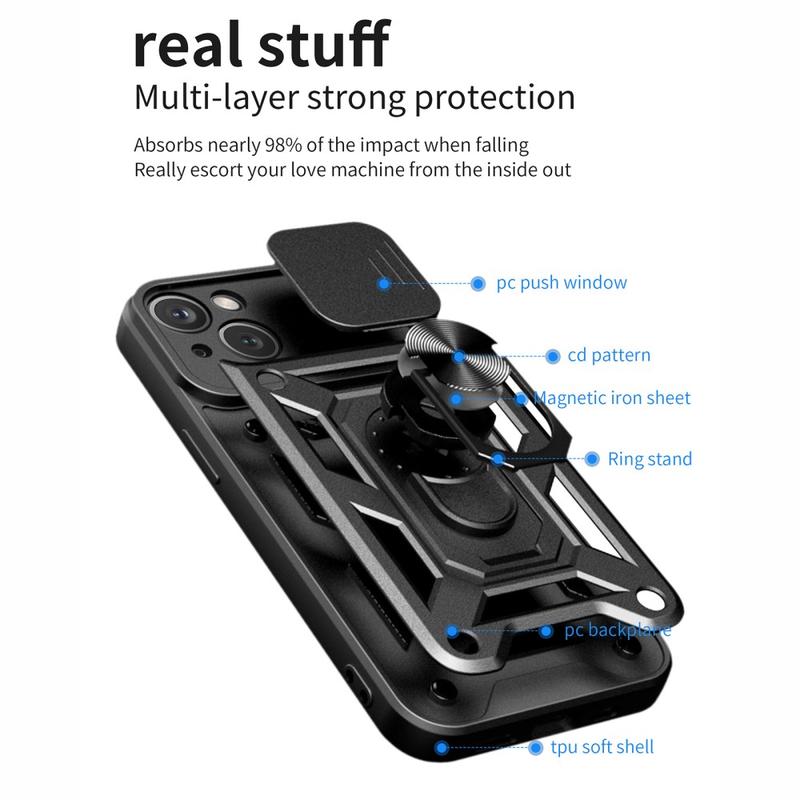 - Rotary Ring hybrid case with camera shield for iPhone 15