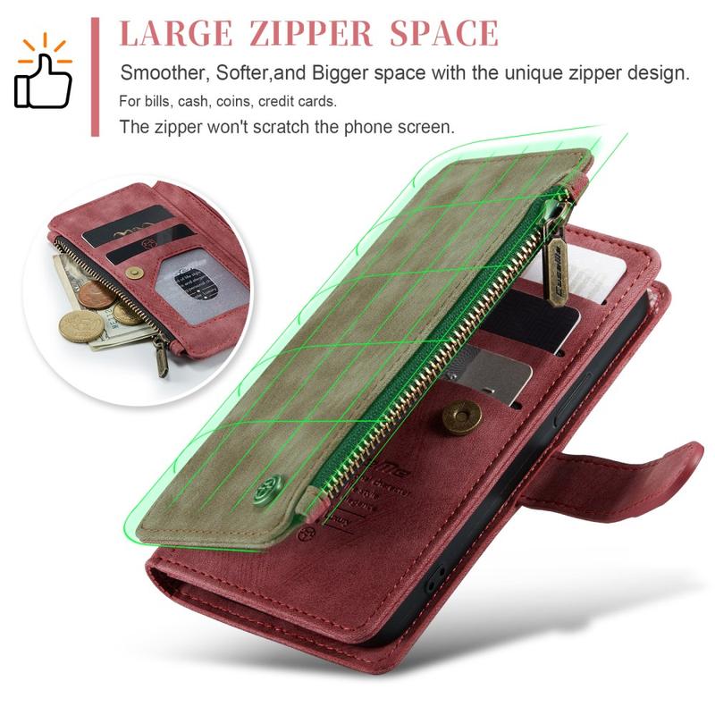 The Caseme C30 multifunctional wallet case for iPhone 16 brings exceptional all-around protection and an exclusive, refined design. This elegant case is made of premium polyurethane, reinforced with a shock-resistant TPU inner cover that snuggles your iPhone 16 perfectly. Meanwhile, the Caseme C30 wallet case is enhanced with numerous card slots, one large money compartment inside, and one outside zipper pocket, all protected by a secure magnetic closure.