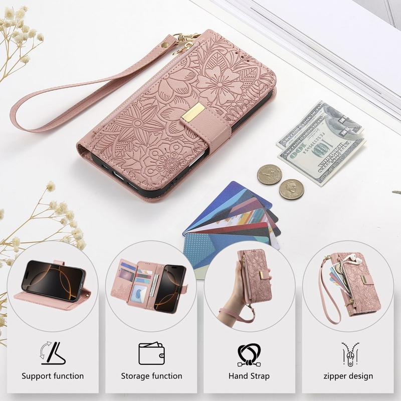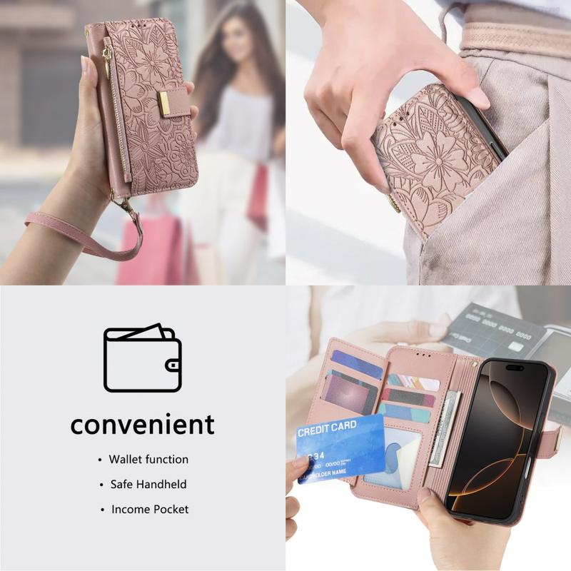 Unlike ordinary iPhone 16 cases, this all-in-one wallet cover combines protection, organization, and elegance. The floral imprinting gives it a stylish edge, while the zipper pocket and wrist strap provide unmatched convenience for daily life and travel.