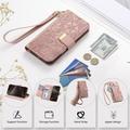 Floral & Leaf Pattern Wallet Case with Zipper Pocket & Wrist Strap for iPhone 16