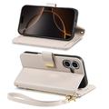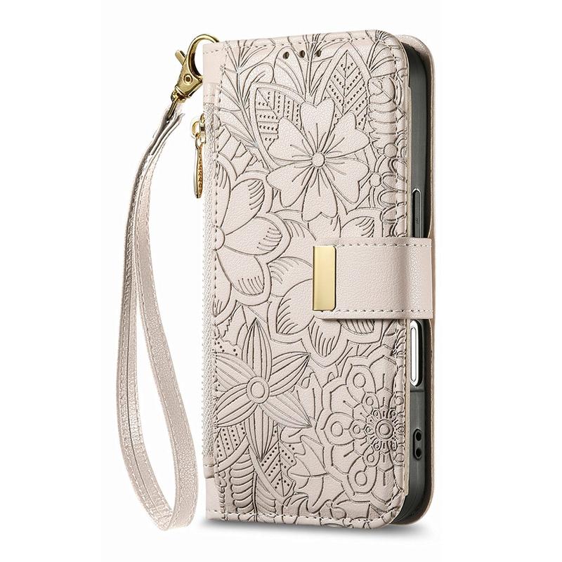 Floral & Leaf Pattern Wallet Case with Zipper Pocket & Wrist Strap for iPhone 16
