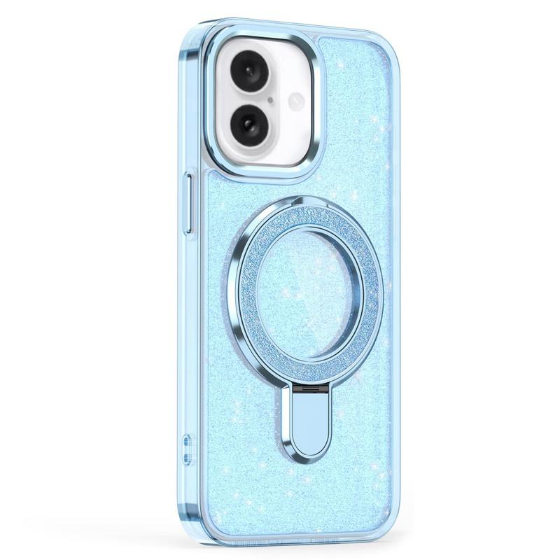 iPhone 16 Glitter Hybrid Case with Kickstand - MagSafe Compatible - Blue