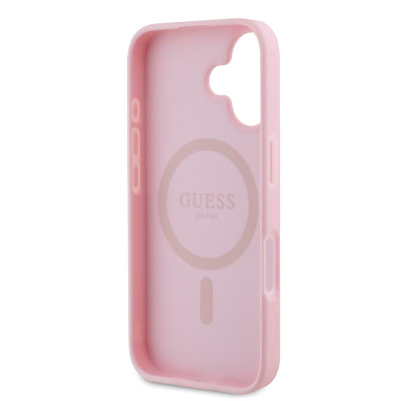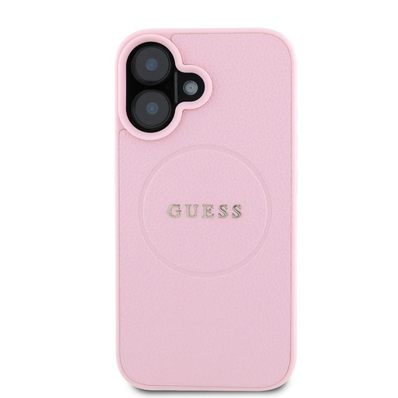 iPhone 16 Guess Grained Classic Logo Hybrid Case - MagSafe Compatible - Pink