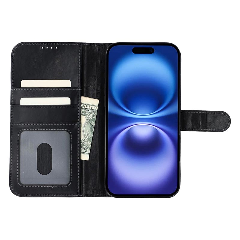 • MyTPhone CardMate Premium Leather Wallet Case for iPhone 16 - Stand Feature, Card Holder, Wireless Charging Support, 2x Screen Protector