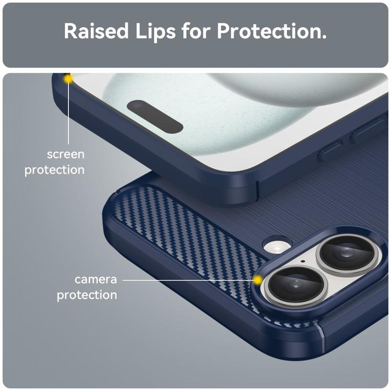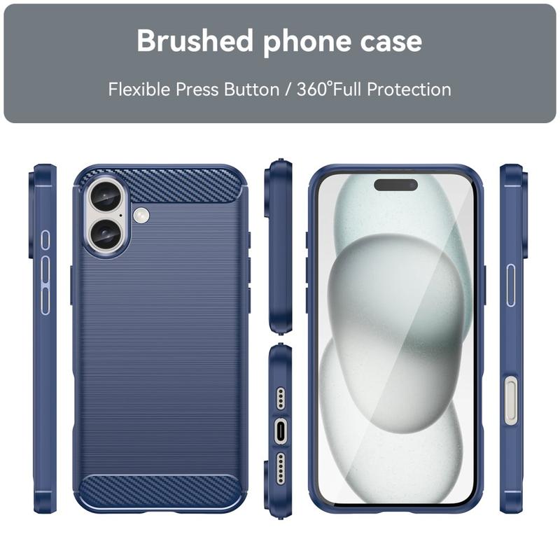 iPhone 16 Plus Brushed TPU Case - Carbon Fiber - Blue
