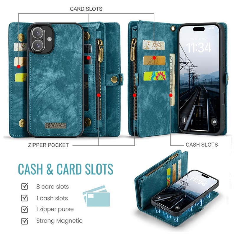 • Caseme 008 2-in-1 Multifunctional Wallet Case for iPhone 16 Plus
