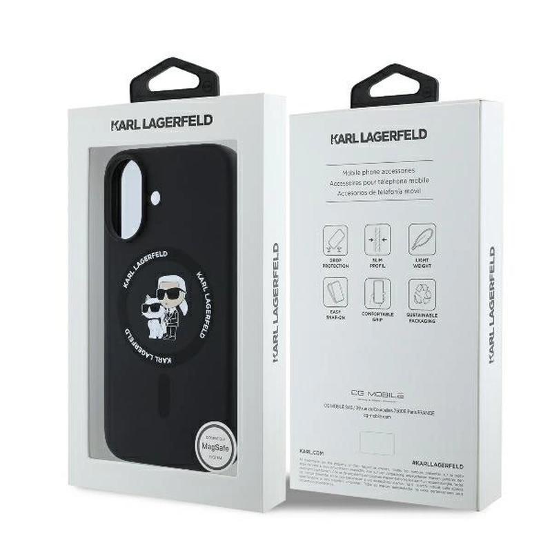Elevate your iPhone 16 Plus with the Karl Lagerfeld Liquid Silicone MagSafe Case, featuring an iconic design of Karl and Choupette. Crafted from premium liquid silicone, this case offers a soft-touch finish and superior protection against scratches and impacts. The sleek black design, combined with MagSafe compatibility, ensures that your phone remains stylish and functional, allowing for easy use with MagSafe accessories. This case is the perfect blend of fashion and practicality, making it a must-have for any Karl Lagerfeld fan.