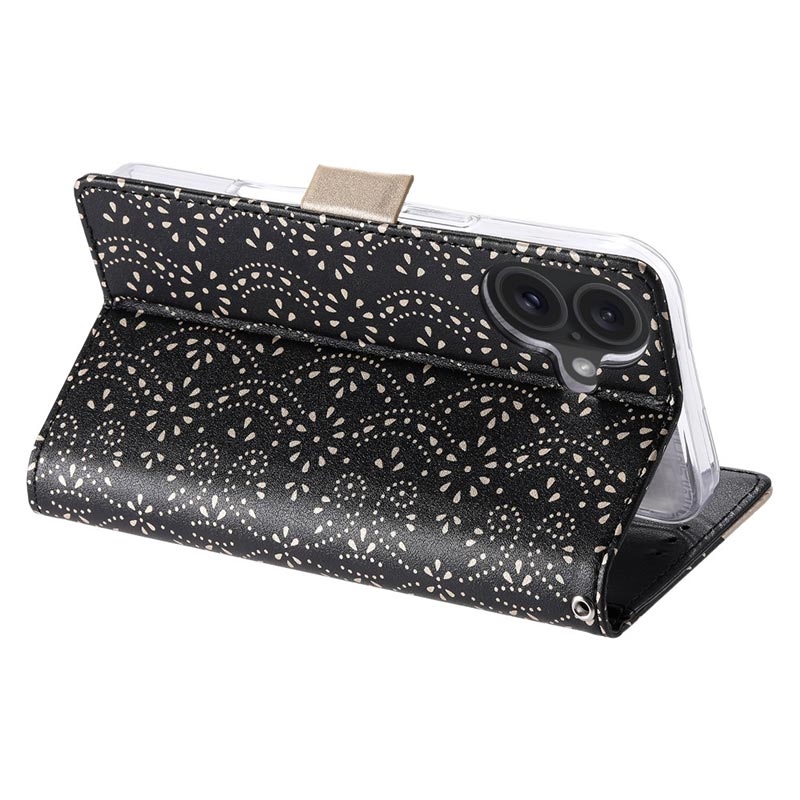 - Two-tone wallet case for iPhone 16 Plus with cute lace pattern