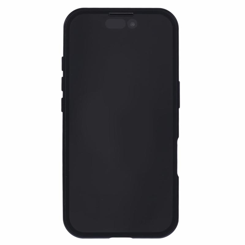 Two pieces design offers easy attachment and secure lock thanks to magnets and buckle. Built-in front tempered glass protects the display from scratches and impacts, side metal frame from bumps and drops, while matte composite material shields the back of the iPhone 16 Plus.
