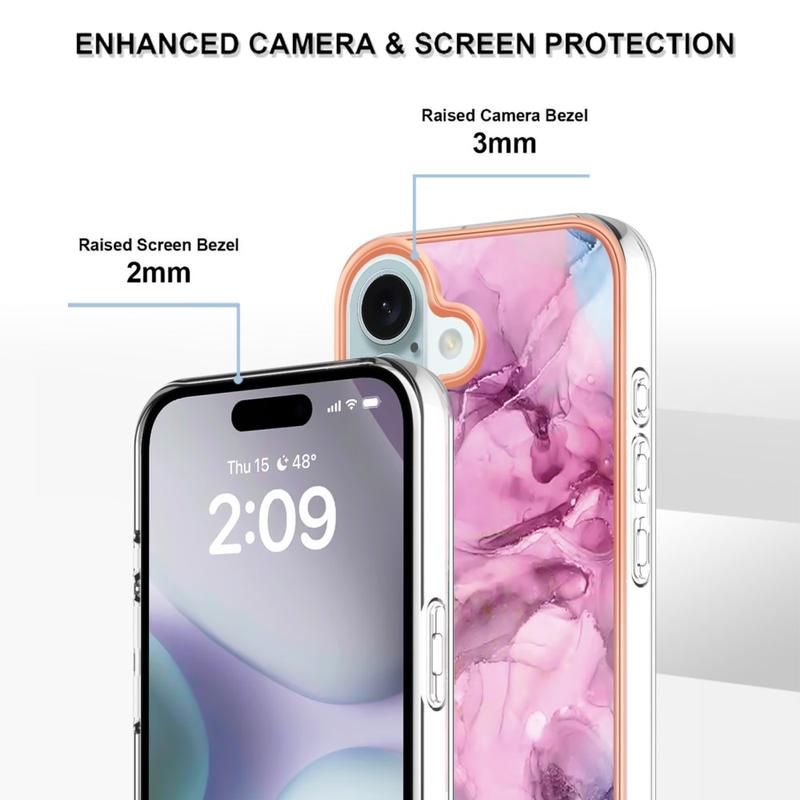 Marble Pattern Electroplated IMD TPU Case for iPhone 16 Plus