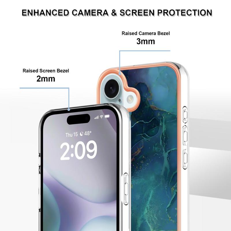 Marble Pattern Electroplated IMD TPU Case for iPhone 16 Plus