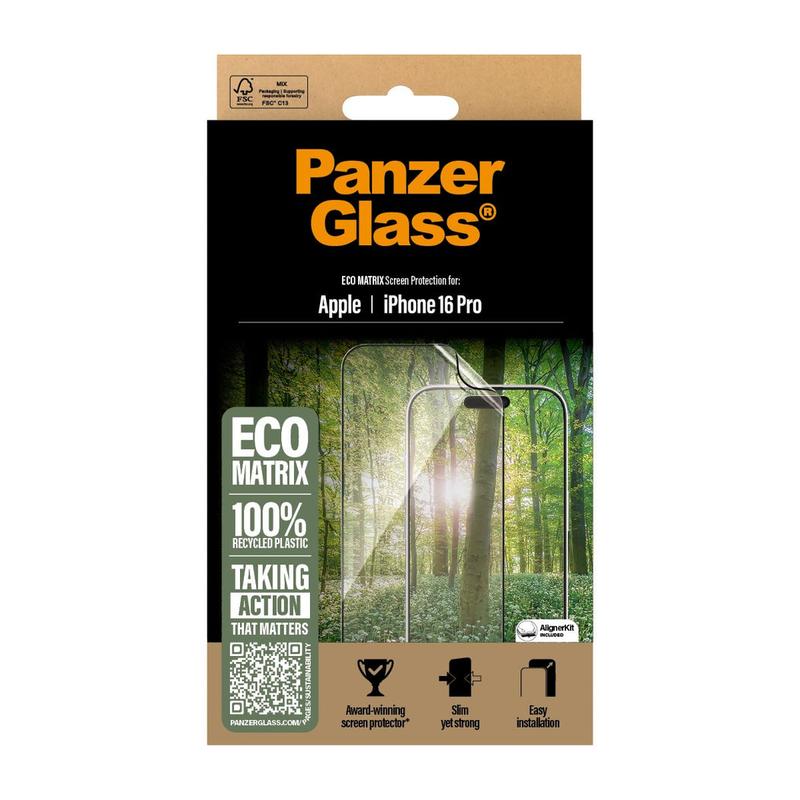 PanzerGlass Eco Matrix Ultra-Wide Fit Screen Protector with EasyAligner for iPhone 16 Pro Max - 100% Recycled