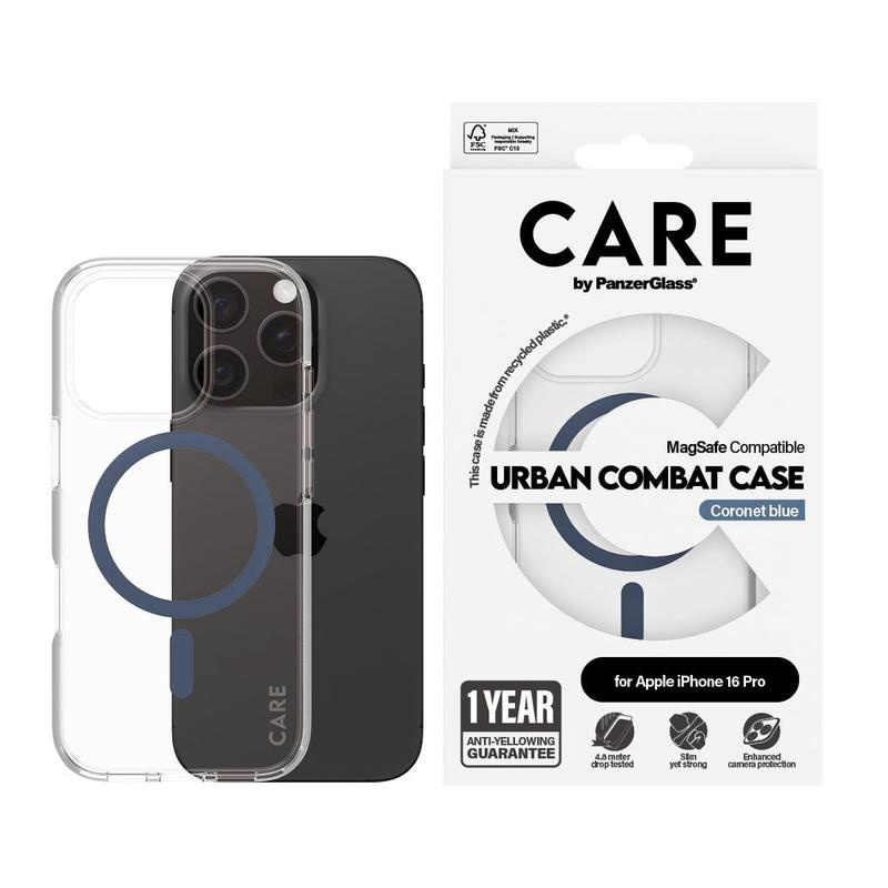 Care by PanzerGlass Transparent Urban Combat Case for iPhone 16 Pro - MagSafe Compatible