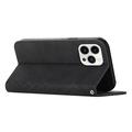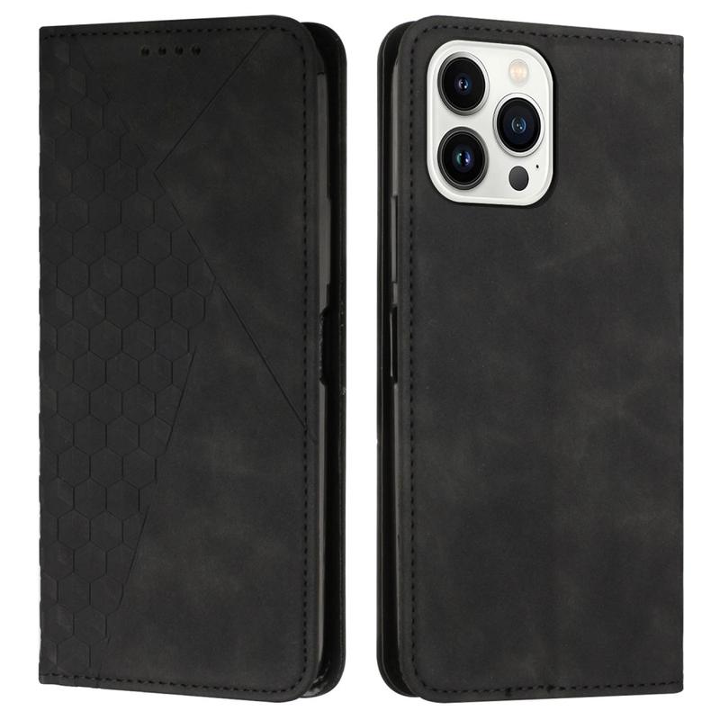 iPhone 16 Pro Max Rhombus Pattern Wallet Case with Magnetic Closure - Black