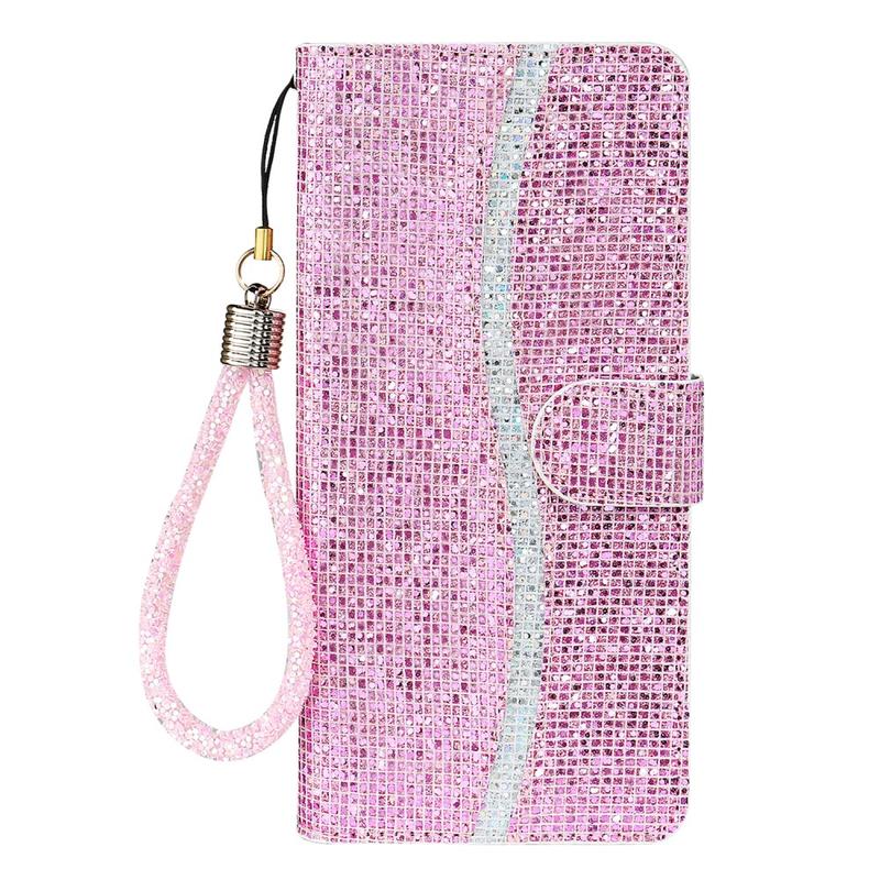 Elevate the style of your iPhone 16 Pro with this stylish glitter wallet case. The glittery powder and unique design will give your device a distinctive and fashionable look. The TPU and PU materials make the case lightweight and easy to install, while the practical design combines a wallet and phone case into one convenient unit. The supporting stand design allows for hands-free use when watching movies or reading, and the ultra-strong magnetic closure keeps all your valuable items secure. With precise cutouts for full access to ports, function buttons, speakers, and camera, this case provides protection against daily wear and tear, scratches, marks, and scrapes. The handy strap allows for easy carrying.