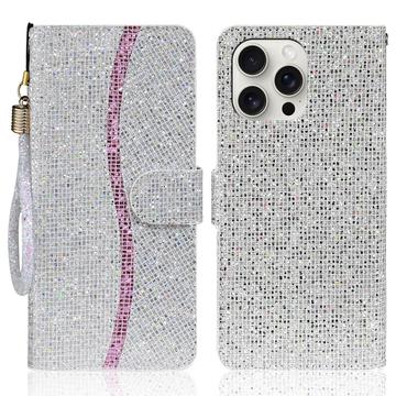 iPhone 16 Pro Max Stylish Glitter Wallet Case - Silver