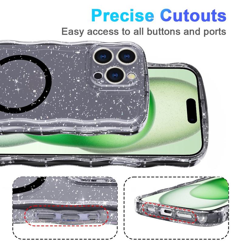 Wave-Edge Laser Glitter MagSafe TPU Case for iPhone 16 Pro Max