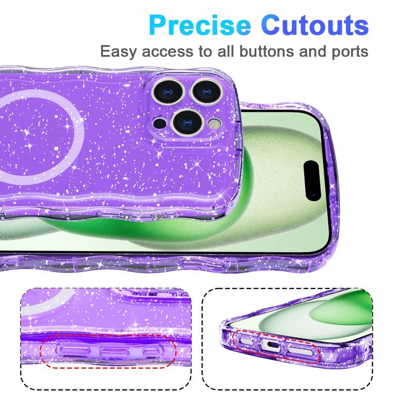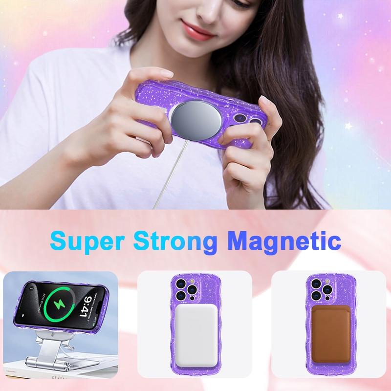 Wave-Edge Laser Glitter MagSafe TPU Case for iPhone 16 Pro Max