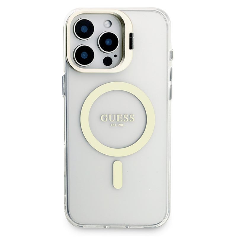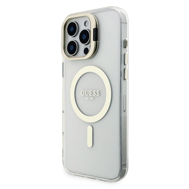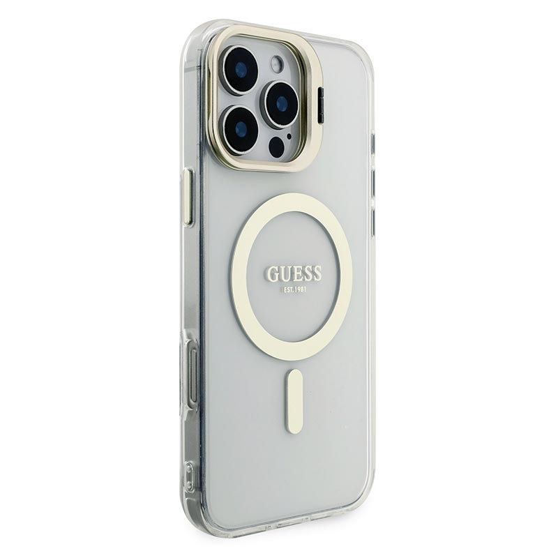 Guess Electroplated Stand Camera Frame MagSafe Case with Interchangeable Backgrounds for iPhone 16 Pro Max - Swap-Style Luxury & Everyday Protection