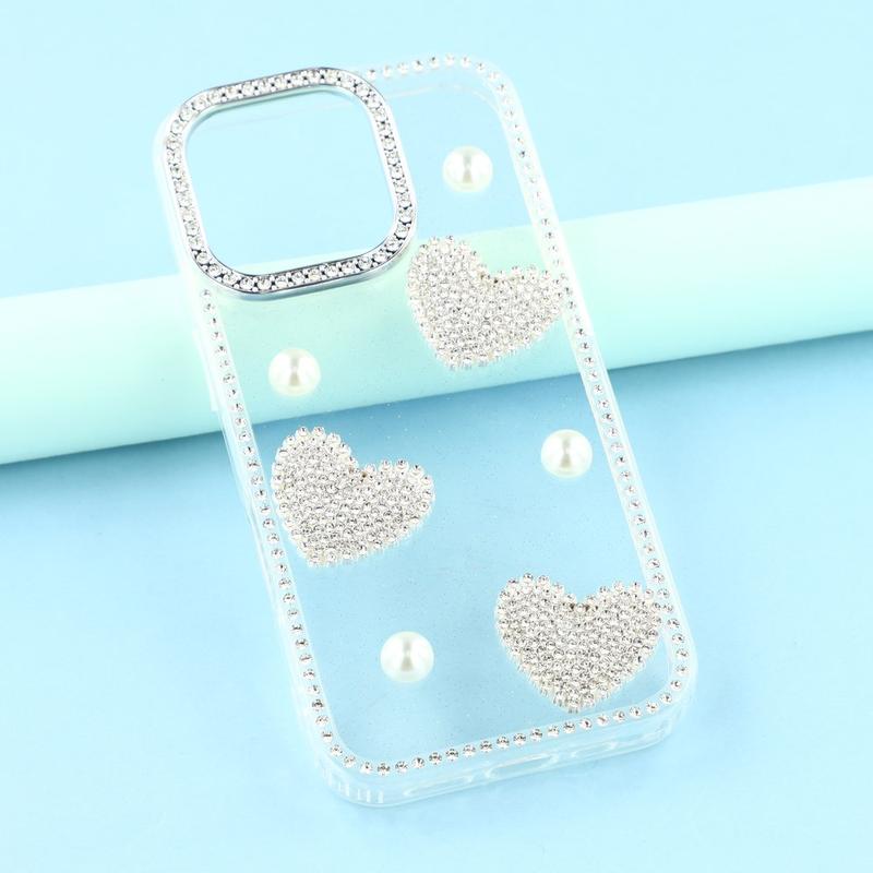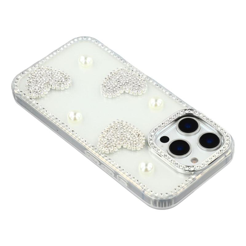 This iPhone 16 Pro Max case combines reliable everyday protection with glamorous style. Featuring shimmering rhinestones around the edges and sparkling pearl heart decorations on the back, it turns your iPhone 16 Pro Max into a fashionable accessory while keeping it safe from scratches and bumps.