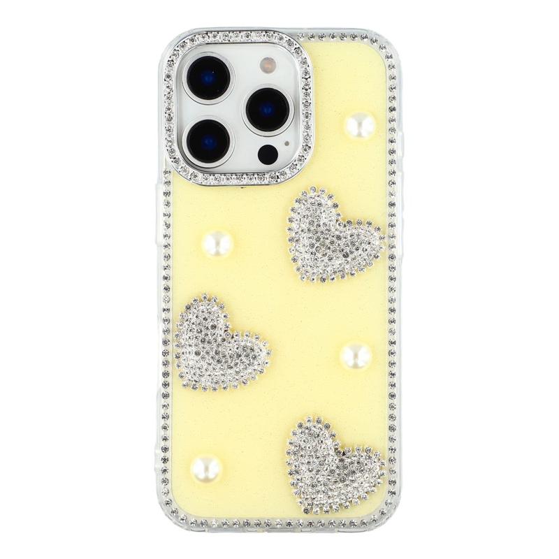 This iPhone 16 Pro case combines reliable everyday protection with glamorous style. Featuring shimmering rhinestones around the edges and sparkling pearl heart decorations on the back, it turns your iPhone 16 Pro into a fashionable accessory while keeping it safe from scratches and bumps.
