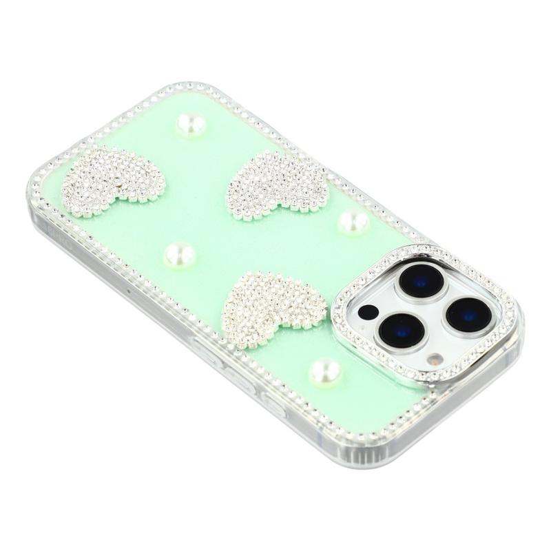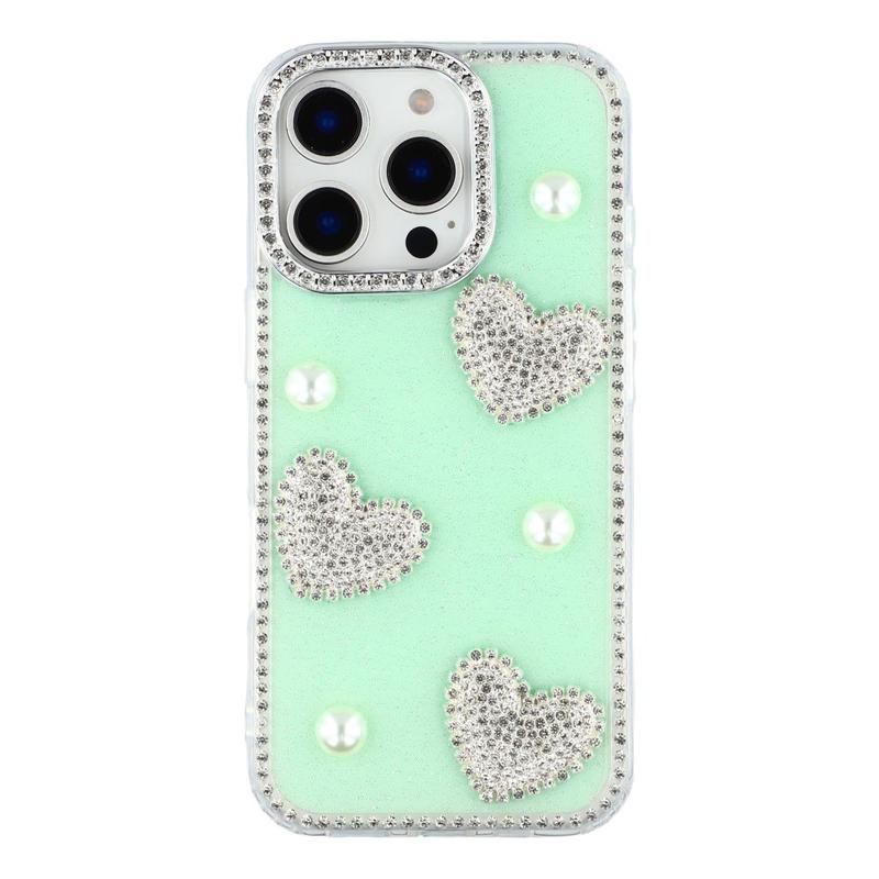 This iPhone 16 Pro case combines reliable everyday protection with glamorous style. Featuring shimmering rhinestones around the edges and sparkling pearl heart decorations on the back, it turns your iPhone 16 Pro into a fashionable accessory while keeping it safe from scratches and bumps.