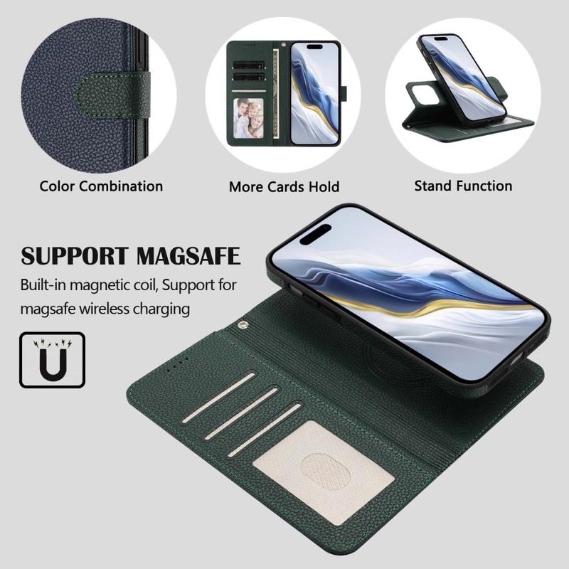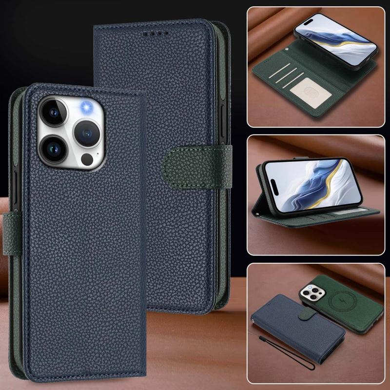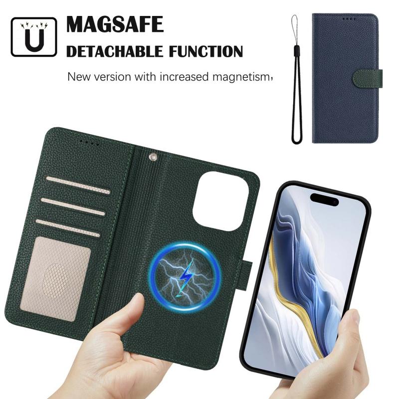 Detachable Wallet Case with MagSafe, RFID Protection and Hand Strap for iPhone 16 Pro