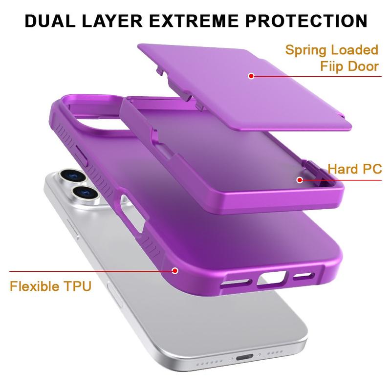 iPhone 16 Pro Hybrid Case with Hidden Mirror & Card Slot - Purple
